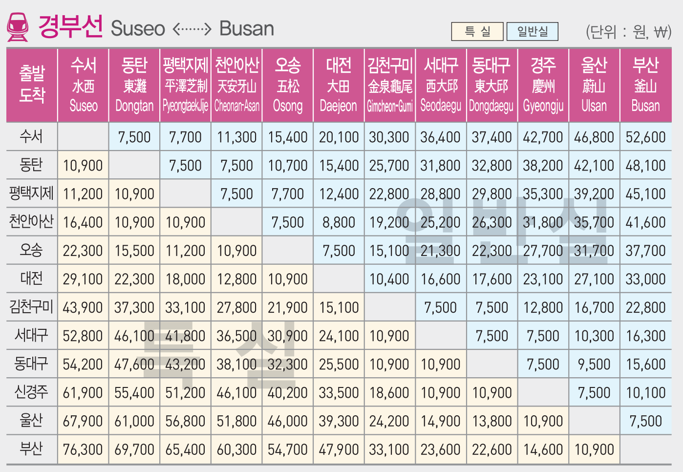 경부선 요금표