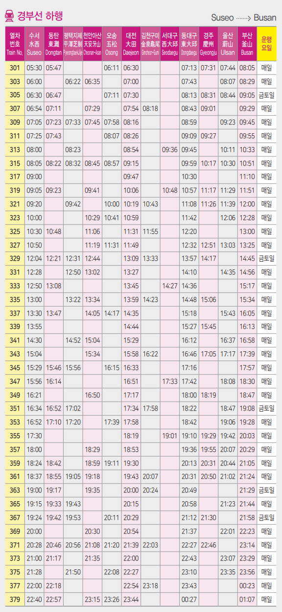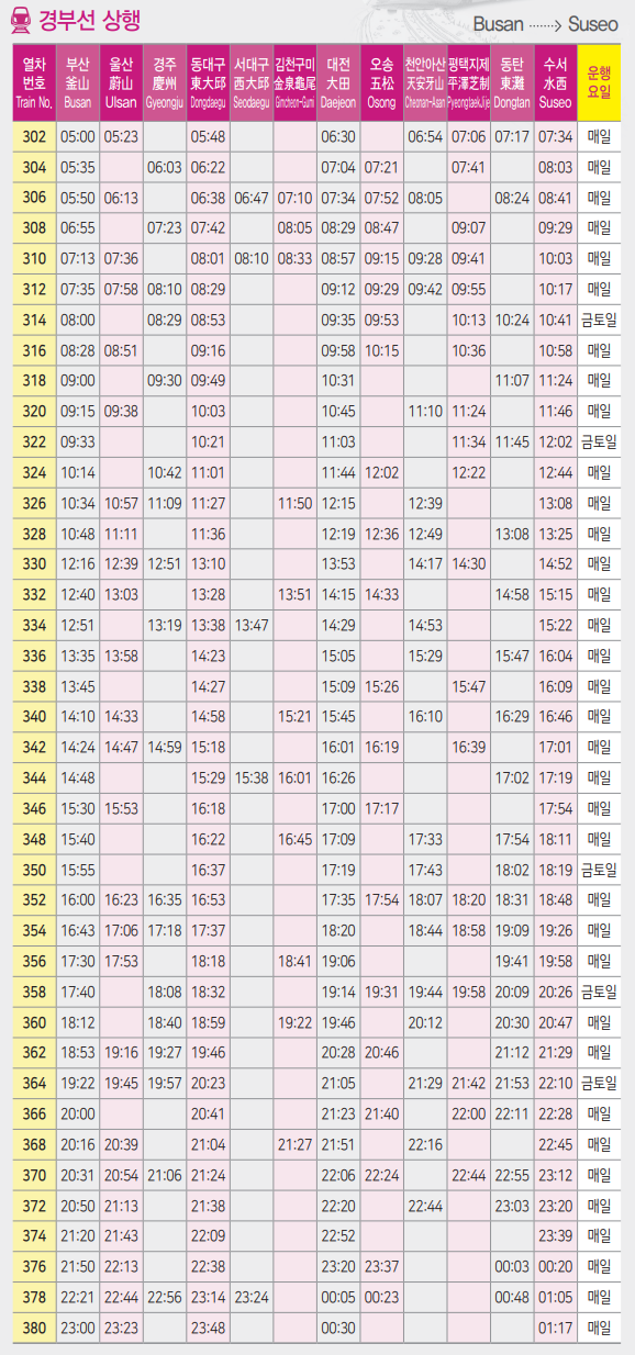 경부선 시간표 안내