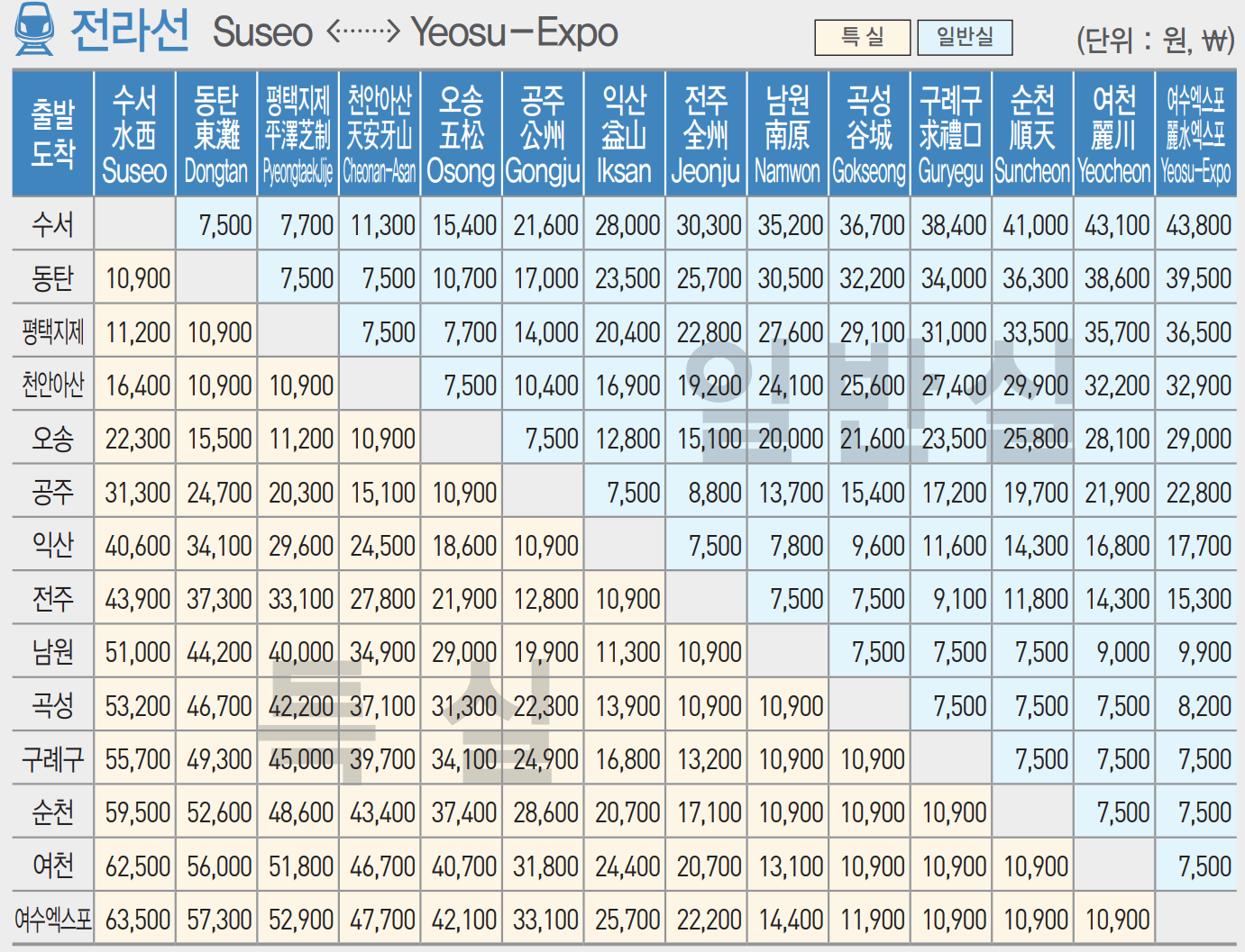 전라선 요금표