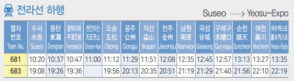 전라선 시간표 안내