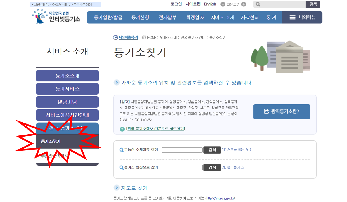 등기소 위치 확인할 수 있는 메뉴는 다음과 같습니다. 아래의 등기소 링크를 이용하여 방문하시기 바랍니다.